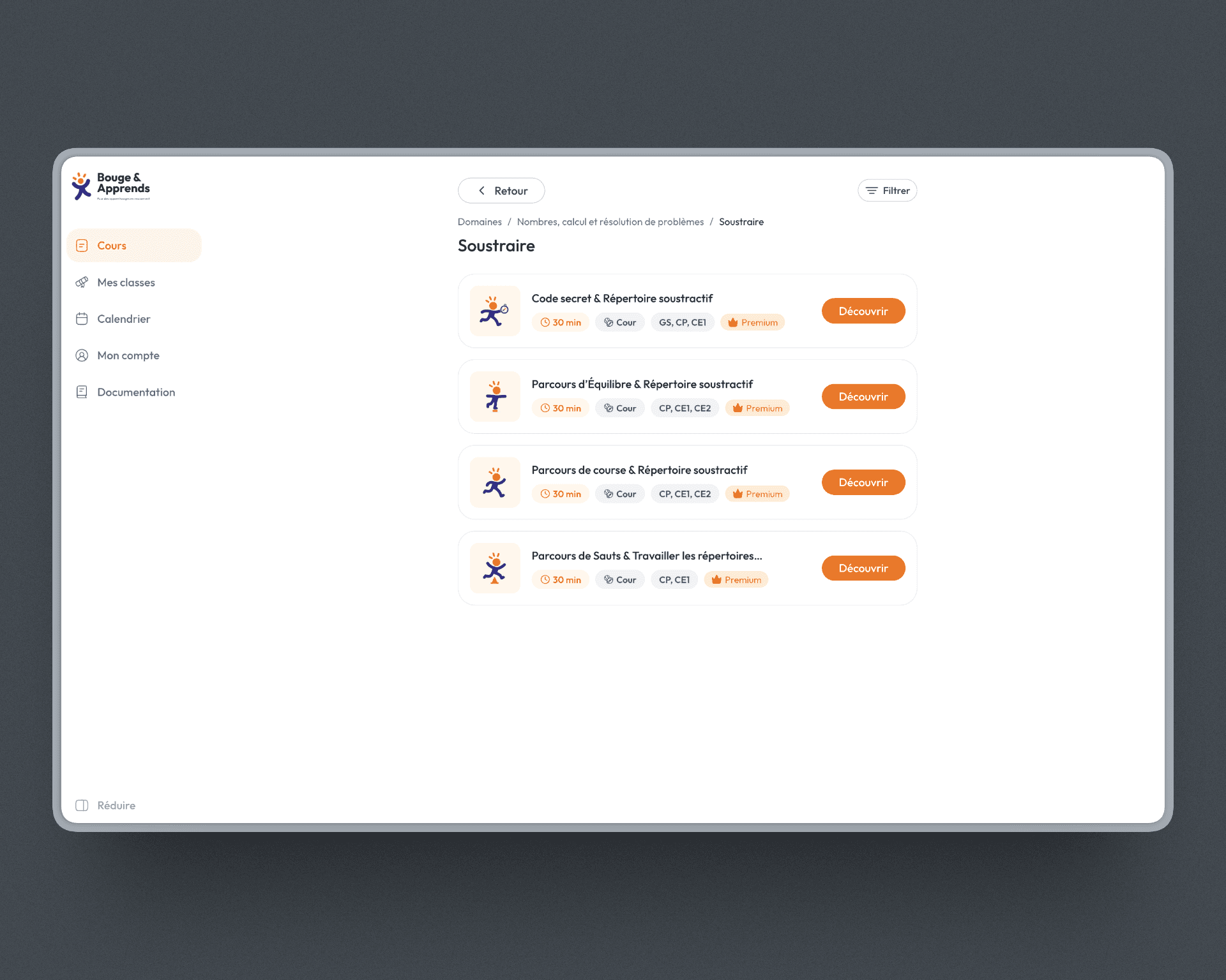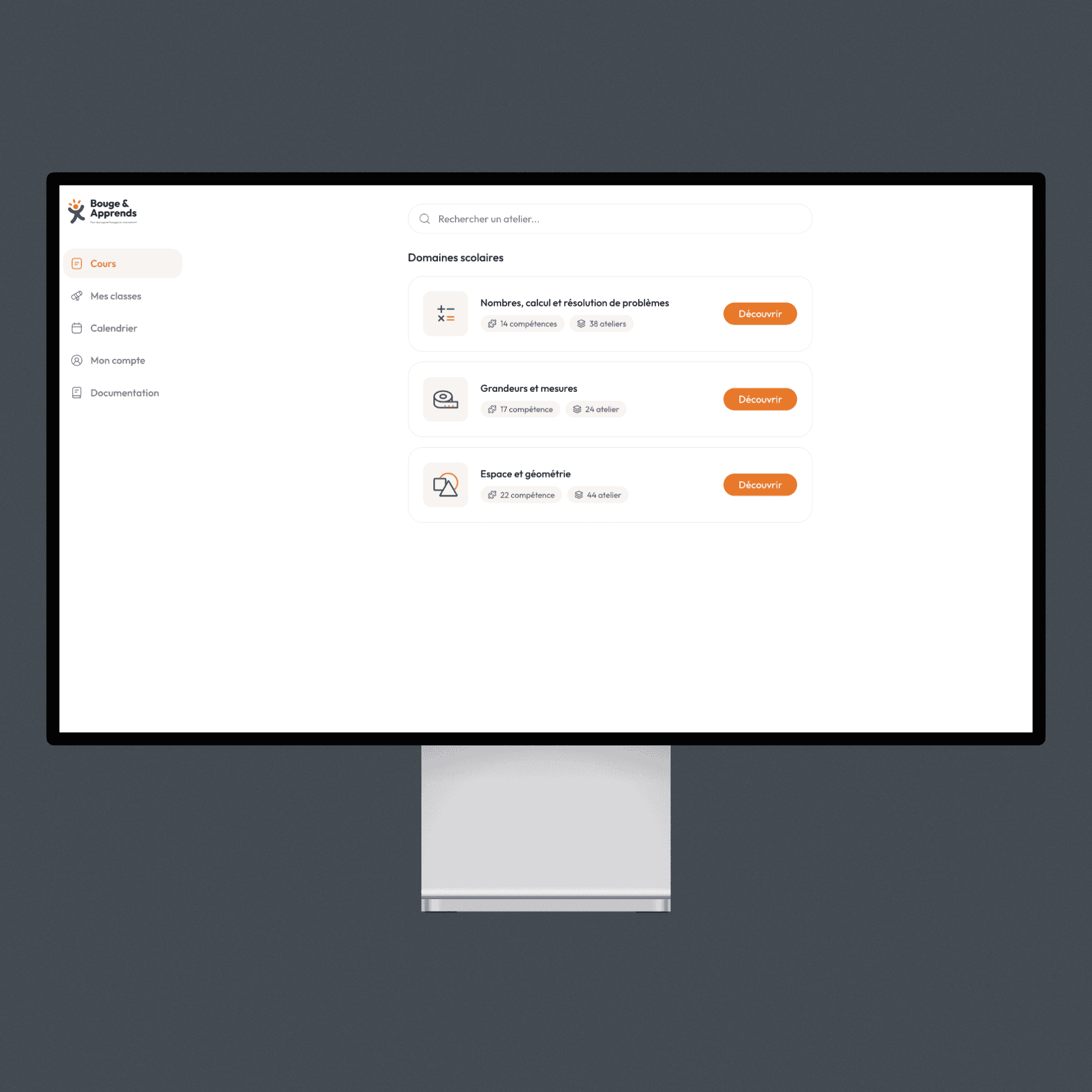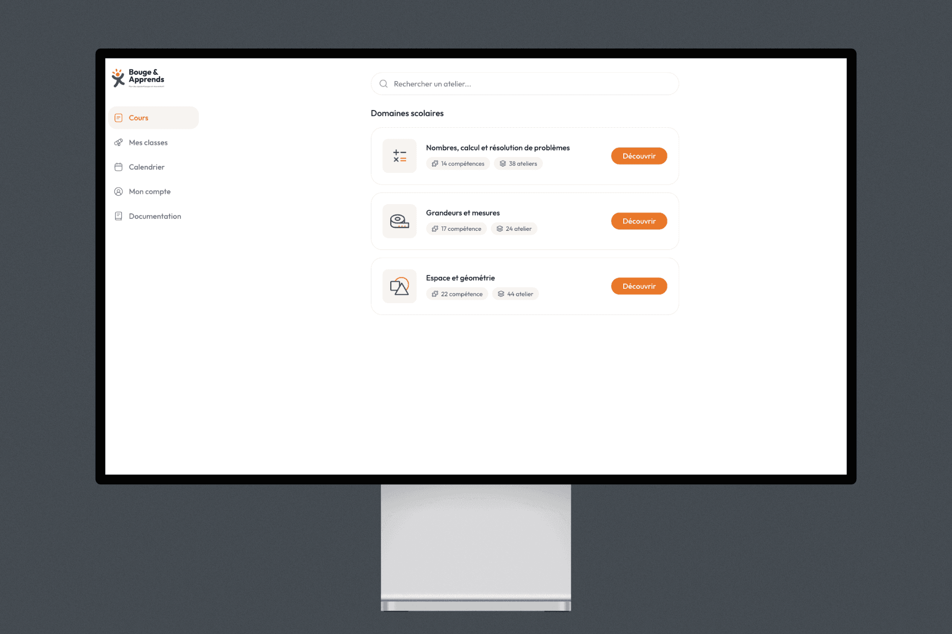 L'enjeu n'était pas simplement de recoder l'existant. Nous avons repensé les parcours utilisateurs pour que chaque enseignant puisse, en quelques clics, trouver une leçon active adaptée à son niveau de classe et à la compétence qu'il souhaite travailler. Le tout sans aucune formation préalable.