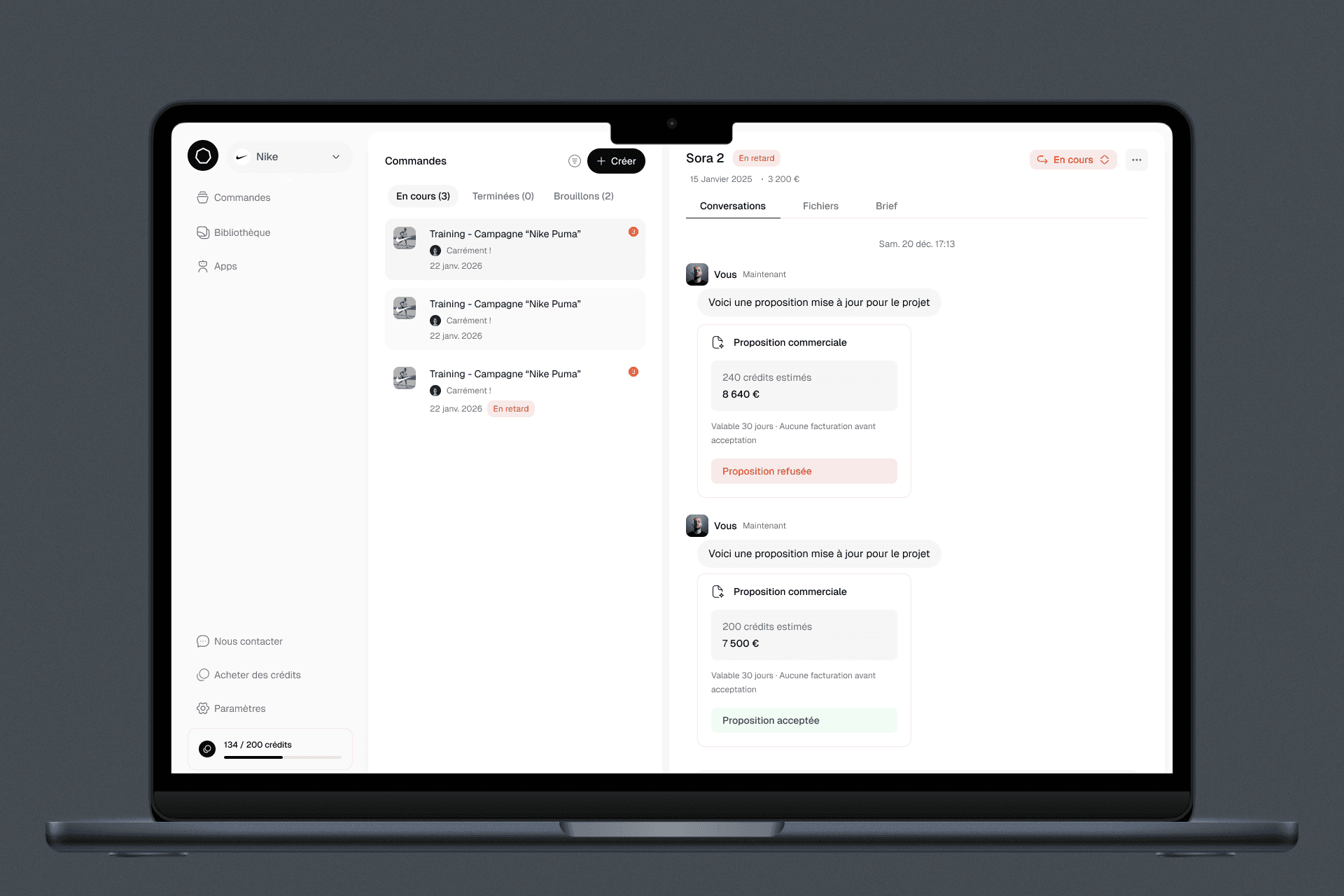 L'architecture a été pensée pour la modularité. Chaque brique — commandes, médiathèque, apps IA, brandbook — fonctionne de manière autonome tout en s'intégrant dans un workflow unifié. Le système de crédits permet aux marques de consommer les services à leur rythme, qu'il s'agisse de faire appel aux designers Okiosk ou d'utiliser directement les applications IA.